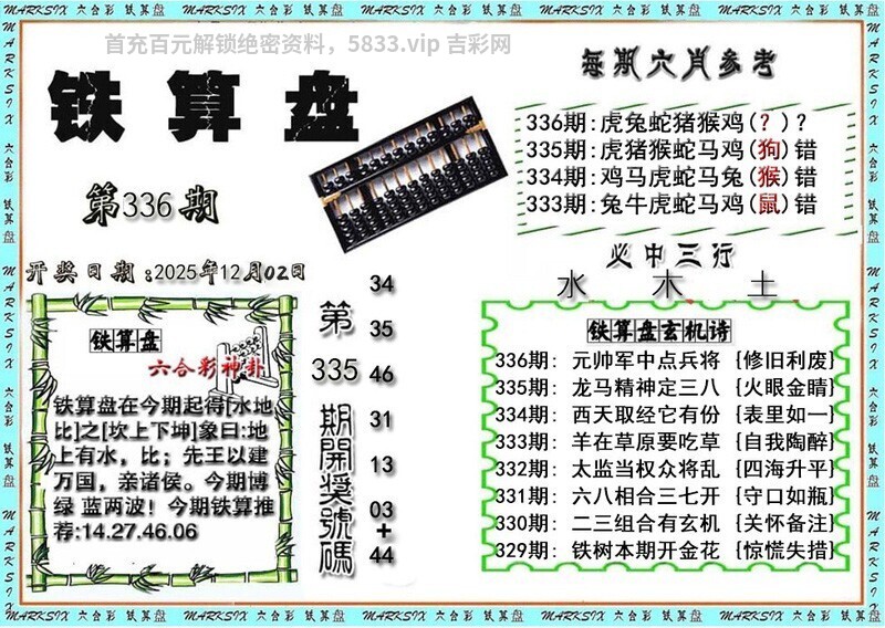 | 335期:五尾中特『1.4.5.7.8』开:狗44中 |
